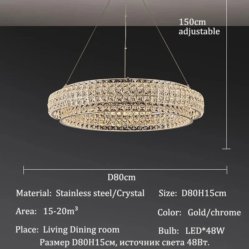 Elevate your living space with our luxury crystal chandelier LED ceiling light fixture. Crafted with a stunning stainless steel body, this modern piece exudes sophistication and style. The polished steel finish adds a touch of elegance to any room, making it the perfect addition to your home decor.