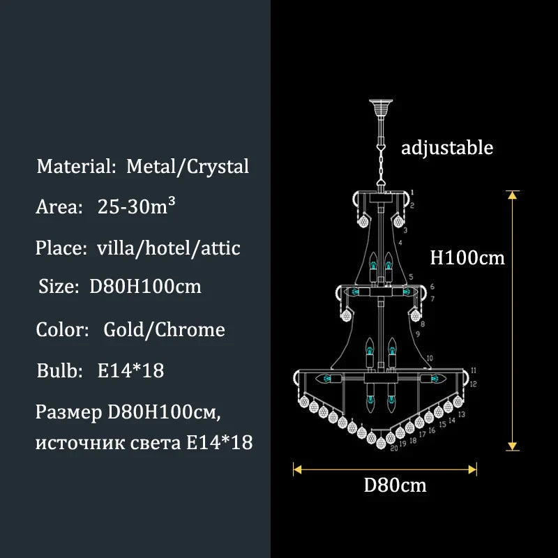 Afralia™ Crystal Chandeliers for Villa Living Room, Hotel Ceiling Lights Fixtures