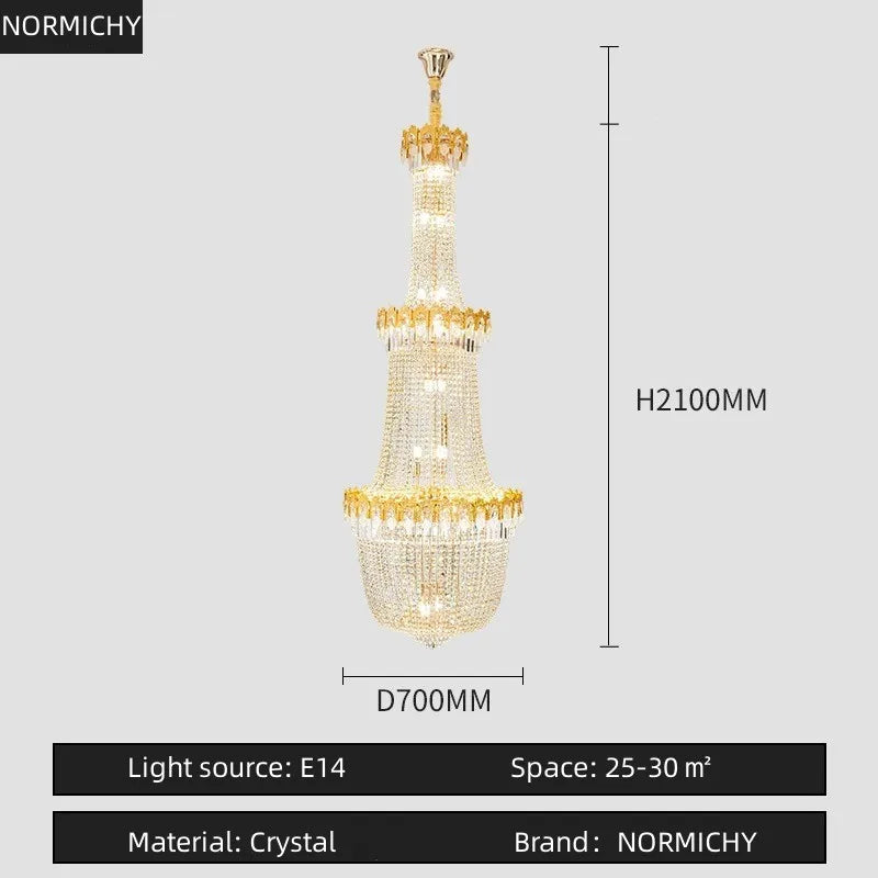 Crafted with high-quality materials, this chandelier emits a warm and inviting glow, creating a cozy atmosphere in your home. The gold lampshade adds a touch of elegance, making it the perfect statement piece for your living room, hotel lobby, or staircase.