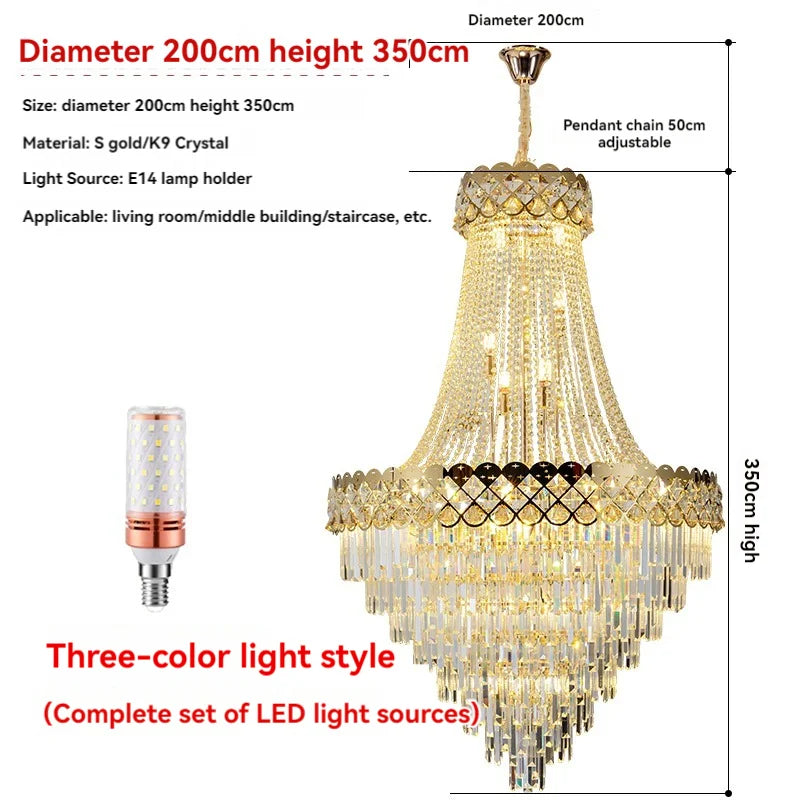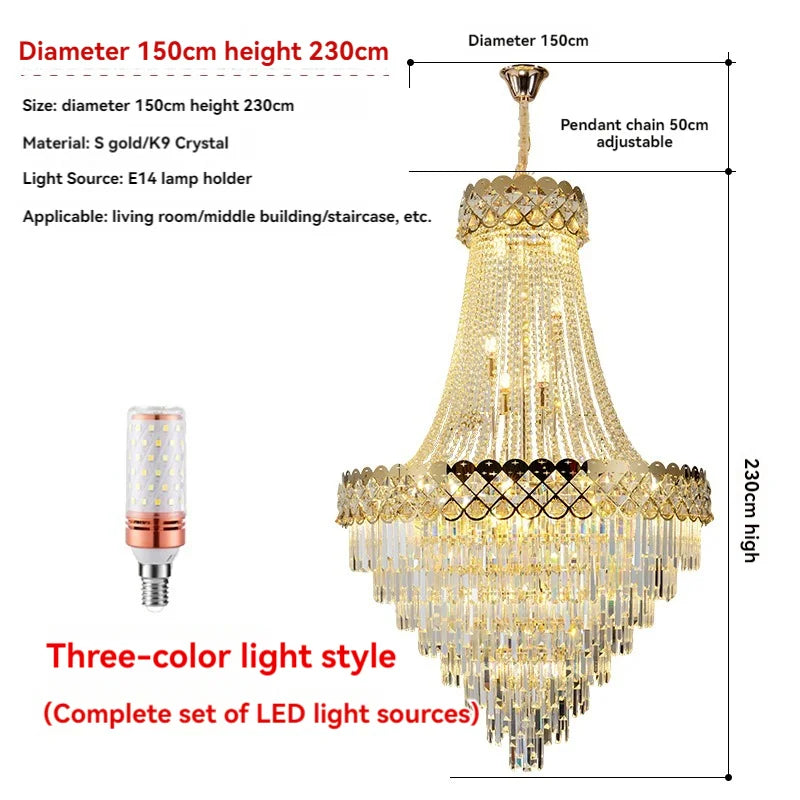 With a lighting area of 15-30 square meters, this chandelier provides ample illumination for a variety of settings. Whether you're hosting a gathering in your parlor or welcoming guests in a hotel hall, this fixture is sure to impress with its 2000-82000 lumens of luminous flux.