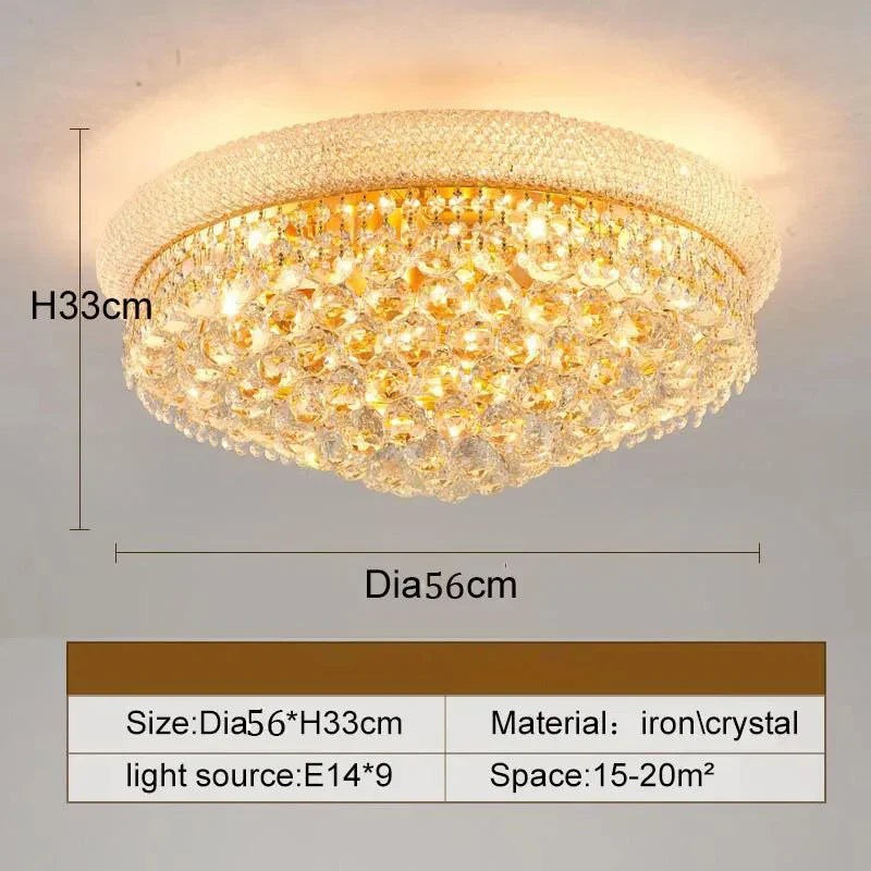 Crafted with high-quality crystal materials, this ceiling lamp is designed to impress. The gold finish and iron base perfectly complement the intricate crystal details, creating a stunning visual impact.