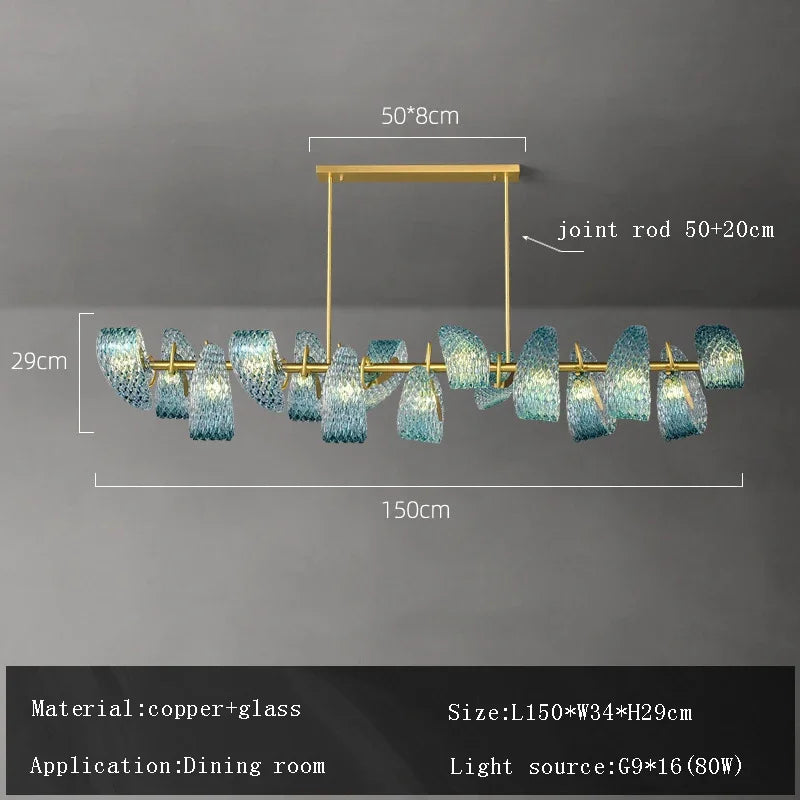 Afralia™ Peacock Blue Glass Shade LED Chandelier for Dining Room Home Decor