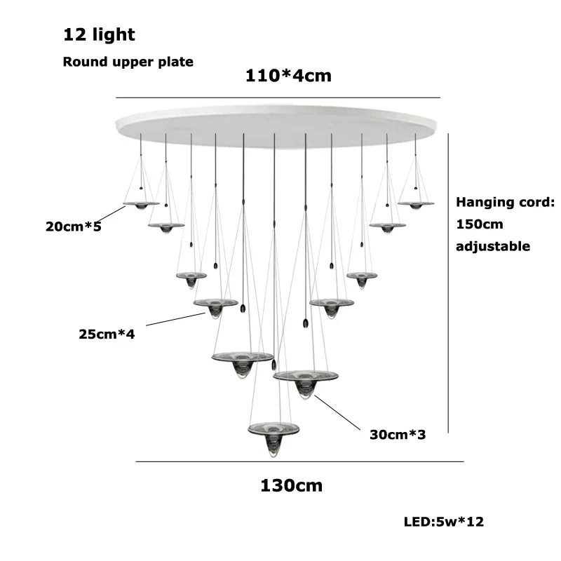Introducing our luxury modern LED adjustable clear glass disk design pendant light, perfect for adding a touch of elegance to any space. This exquisite fixture is designed to enhance the ambiance of your restaurant, kitchen, exhibition hall, parlor, bedroom, hotel, or any other living area.