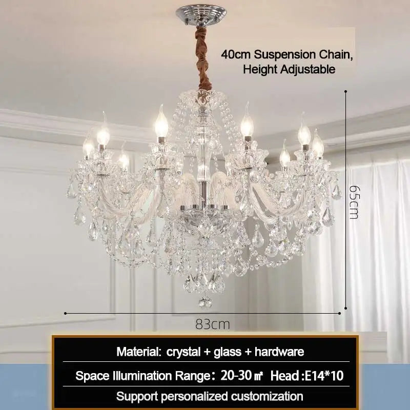 Introducing our exquisite Modern Luxury Crystal Wedding Candle Chandelier Ceiling Light, a stunning piece that adds a touch of elegance to any home decor. Perfect for dining rooms, living rooms, bedrooms, and more, this chandelier is sure to impress with its beautiful design and quality craftsmanship.