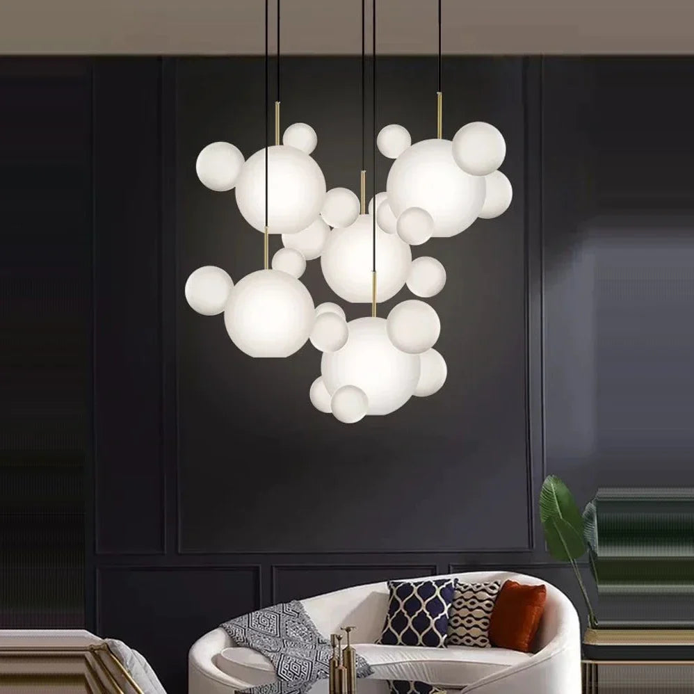 Introducing our stunning Round LED Modern White Transparent Bubble Glass Lampshade Pendant Light, a perfect addition to your indoor home living room ceiling for a touch of elegance and style. Crafted with high-quality materials and a polished steel finish, this chandelier is designed to elevate your space with its modern ART DECO style.