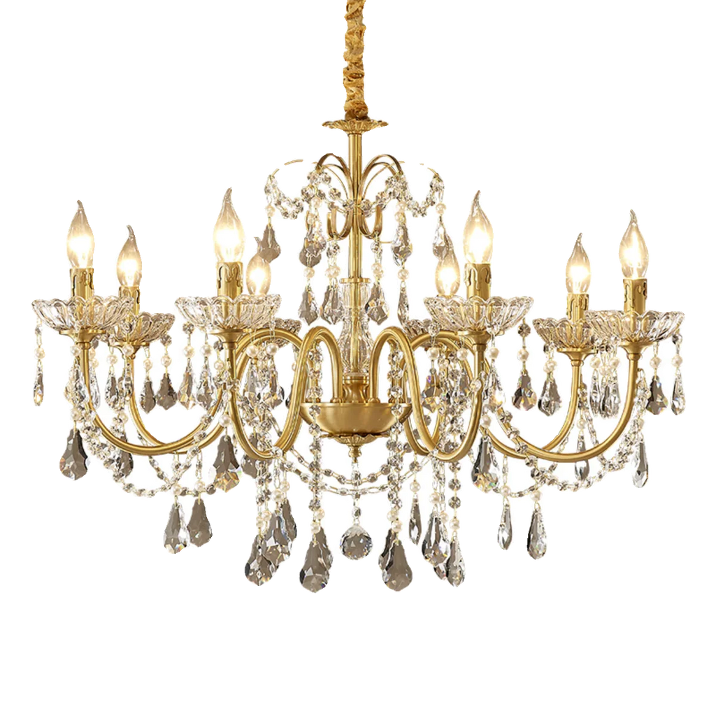 Step into a world of timeless elegance with our Vintage French Living Room Dining Room Full Copper Crystal Chandelier Light. This luxurious and romantic lighting fixture adds a touch of sophistication to any space, whether it be a bedroom, dining room, or princess-themed children's room.