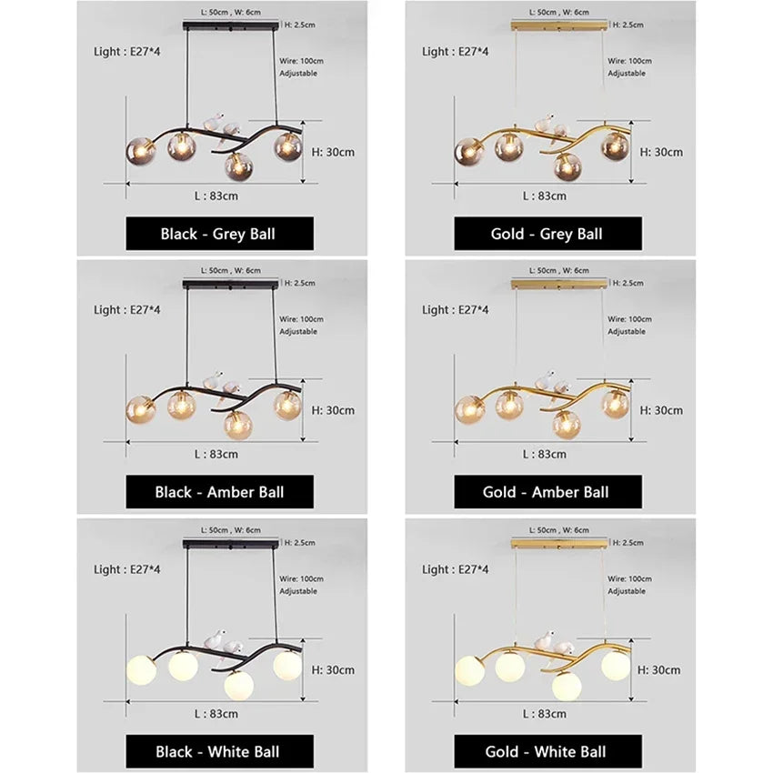 Elevate your space with our exquisite Afralia™ Horizontal Modern Glass LED Chandelier. This luxury pendant light features a stunning black and golden iron frame adorned with delicate bird accents, adding a touch of sophistication to any room.