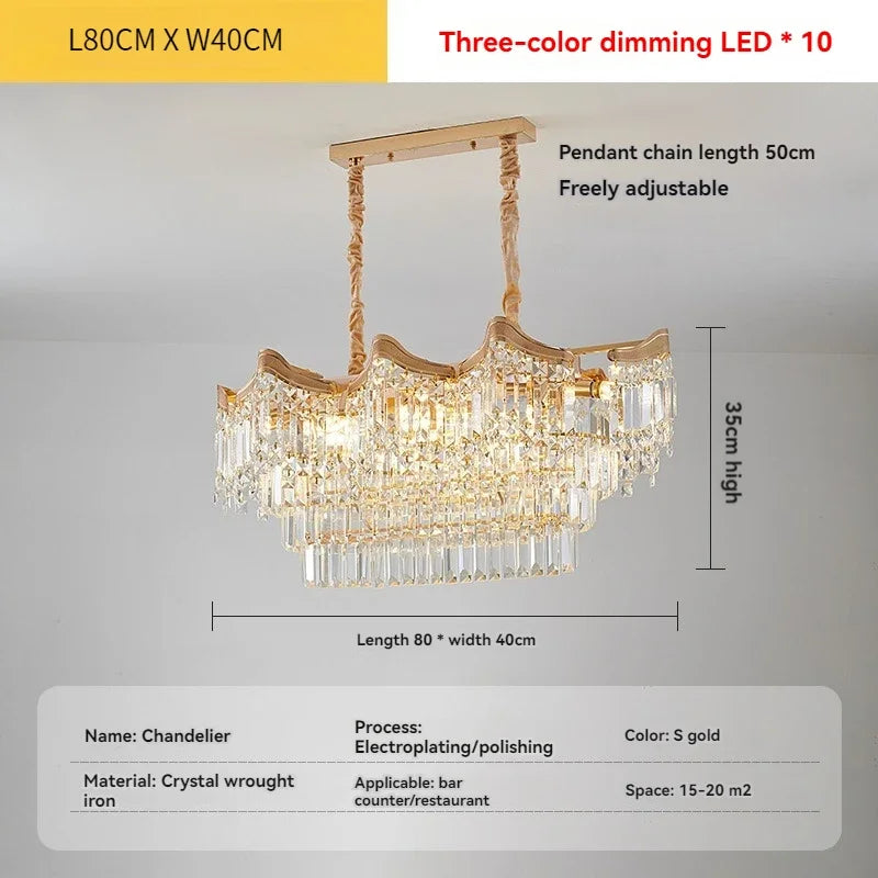 Crafted with high-quality CRYSTAL material, this pendant light exudes luxury and sophistication. The sleek design and plated technics make it a statement piece that adds a touch of glamour to any room. The chandelier is perfect for spaces such as the parlor, restaurant, study, master bedroom, exhibition hall, corridor, kitchen, hotel hall, hotel room, or balcony.