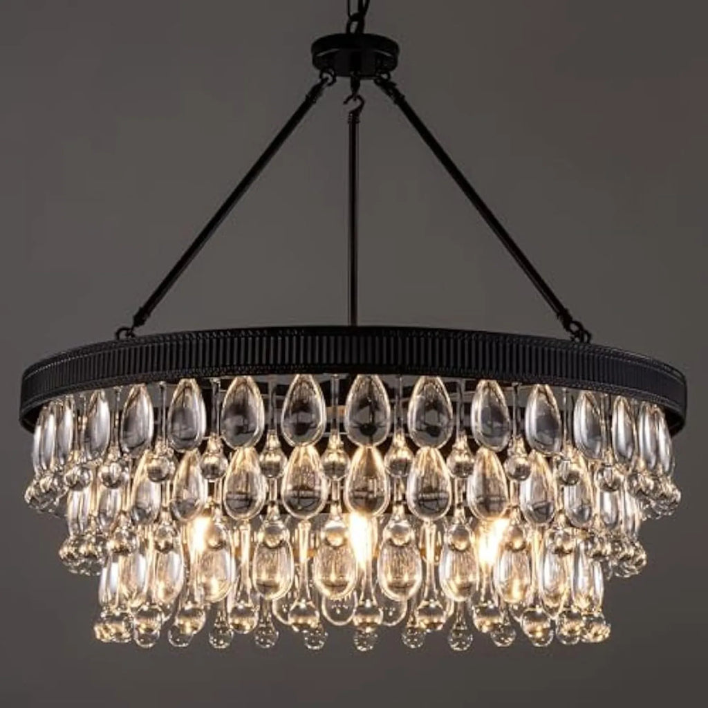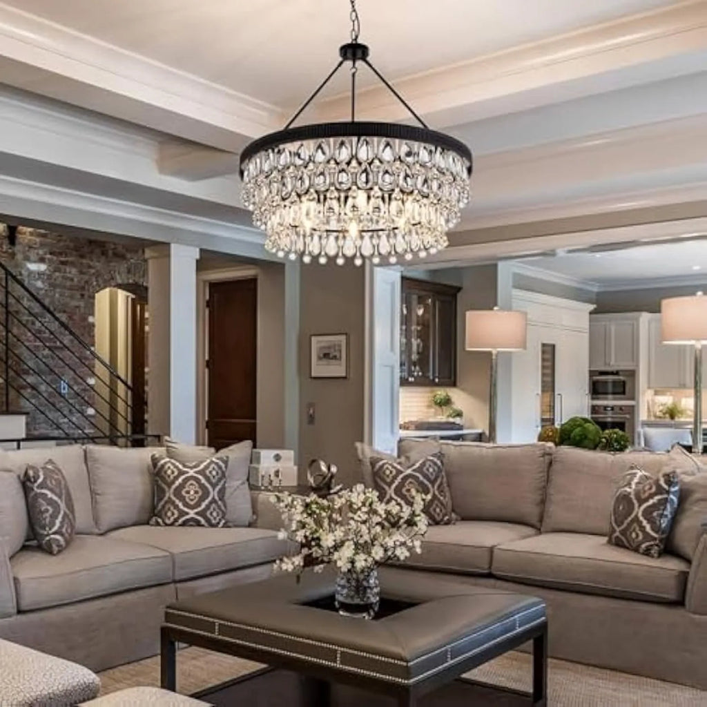 Introducing our luxurious 6-Light 3 Tiers Black Crystal Chandelier, a stunning centerpiece for any modern farmhouse bedroom. Elevate your space with this exquisite light fixture that exudes elegance and style.