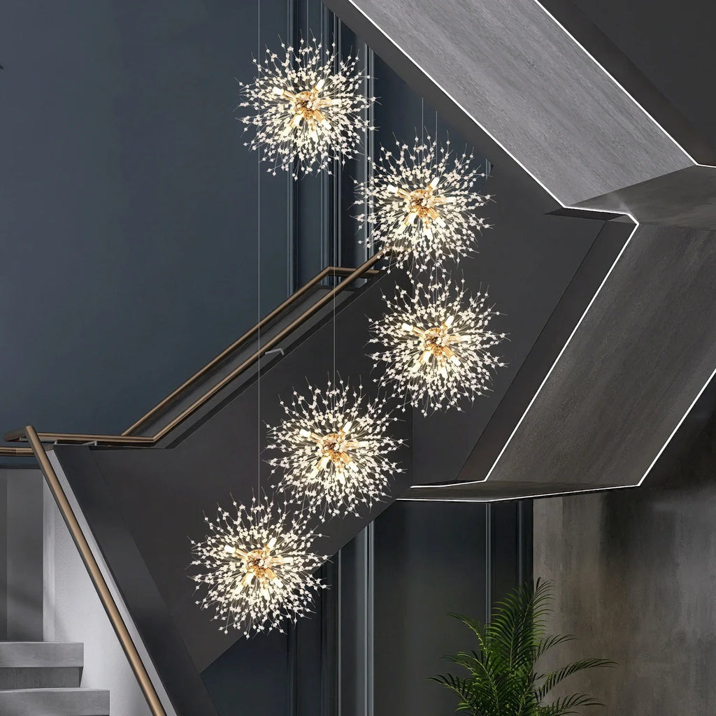 Afralia™ Modern Silver LED Chandelier for Staircase Loft Living Room Lobby