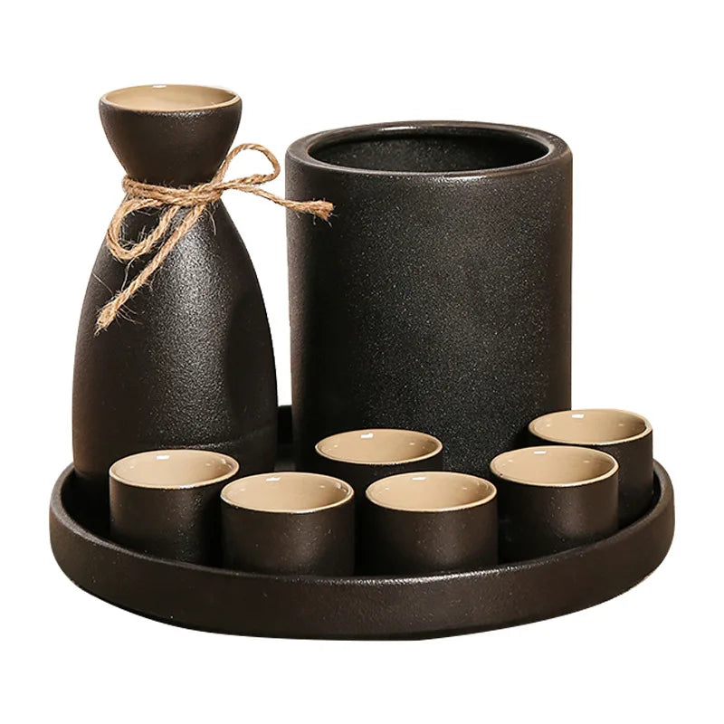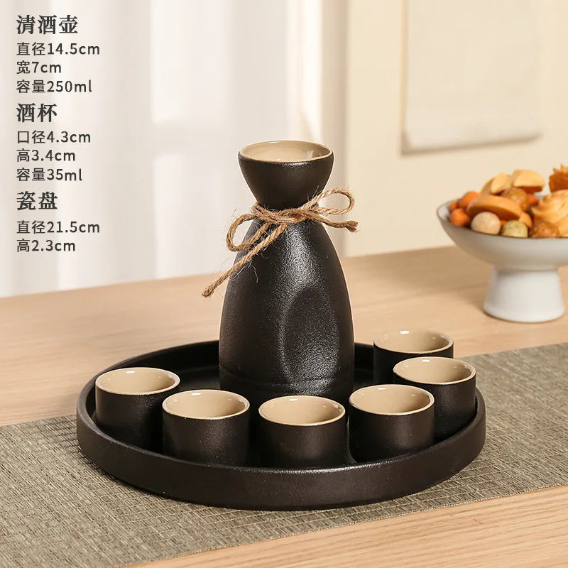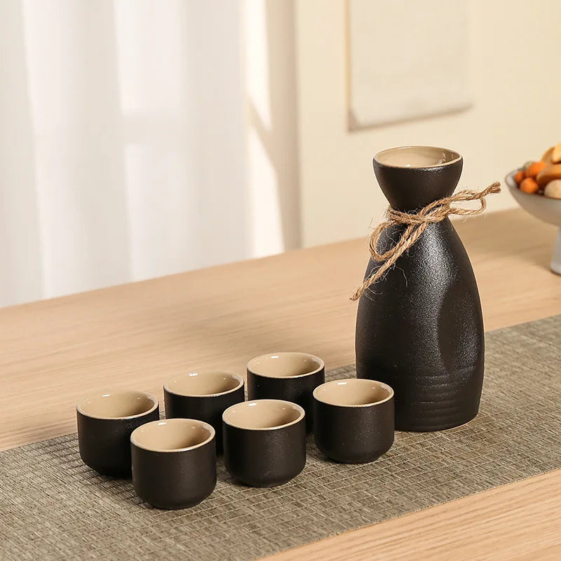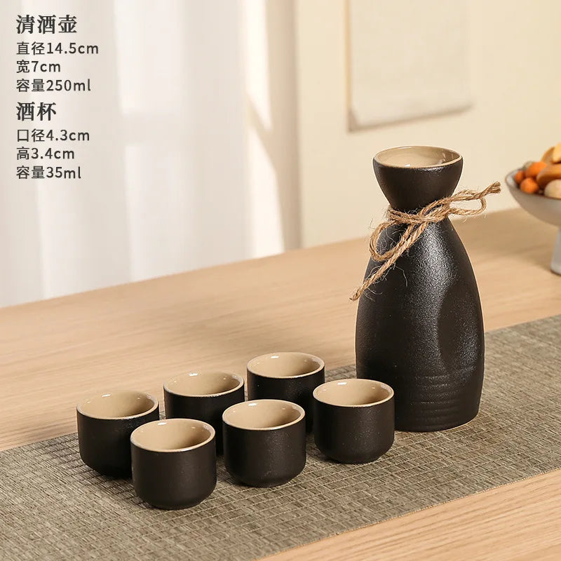 Afralia™ Black Ceramic Wine Warmer & Sake Pot for Home, Handcrafted Japanese Design
