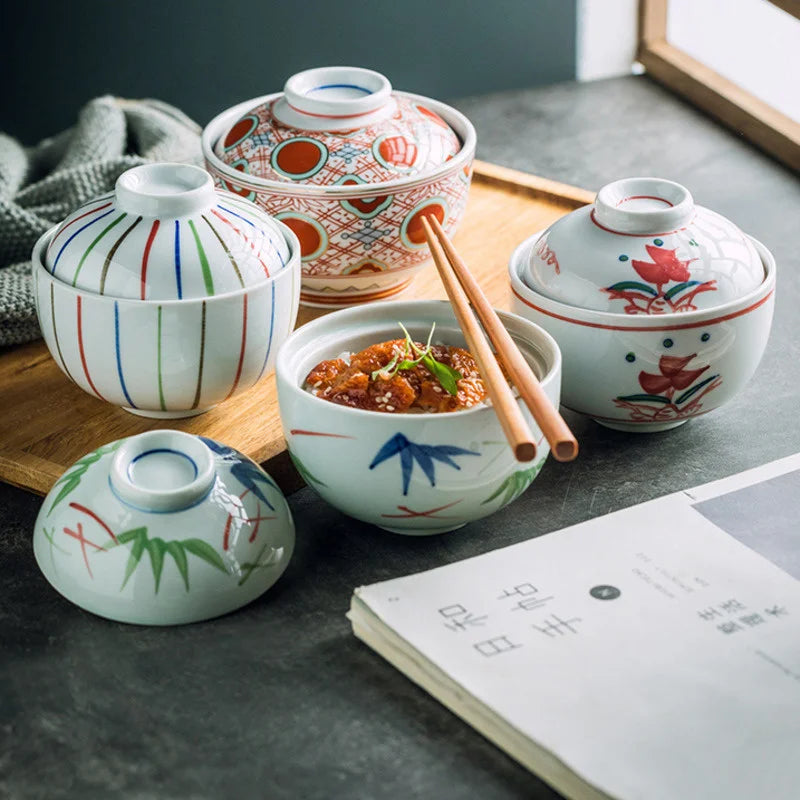 Afralia™ Retro Ceramic Steam Bowl with Cover - Heat-resistant and Multi-functional