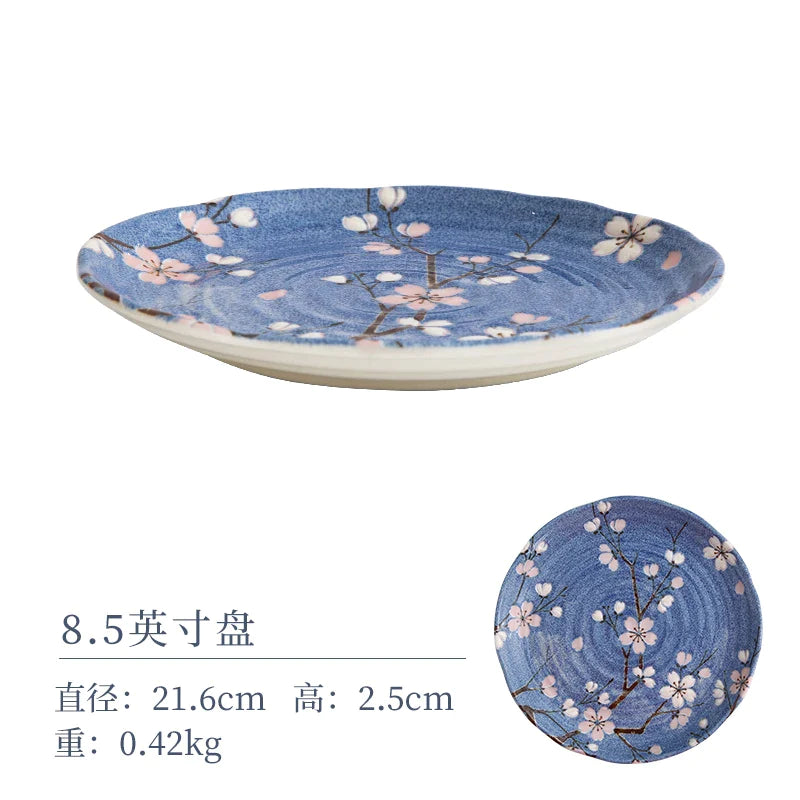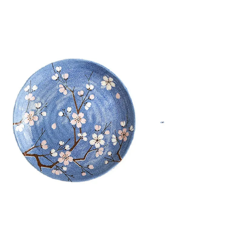 Afralia™ Sakura Blue Ceramic Dining Set - Soup Bowl and Flat Plate Combination
