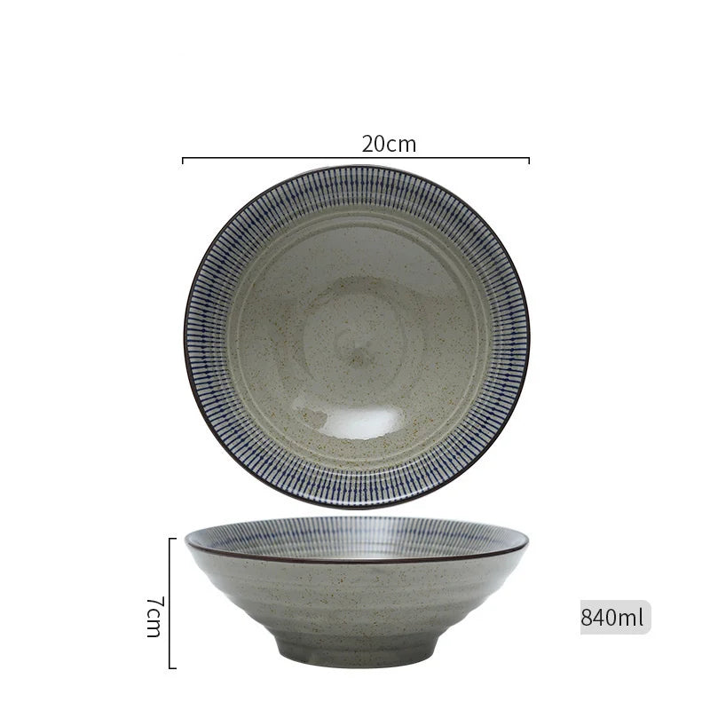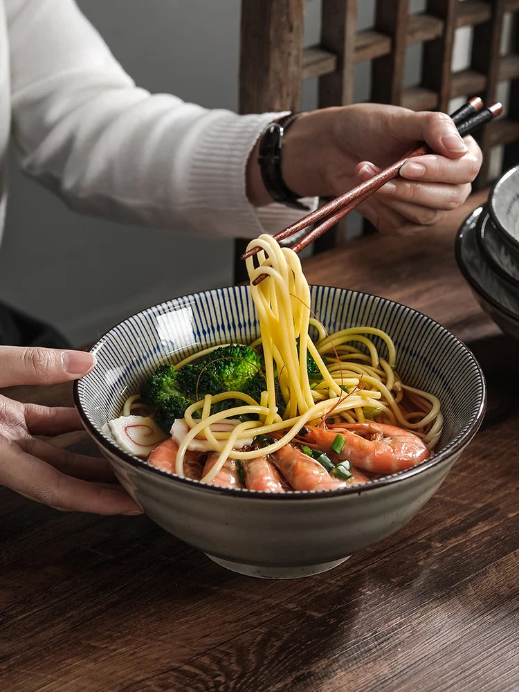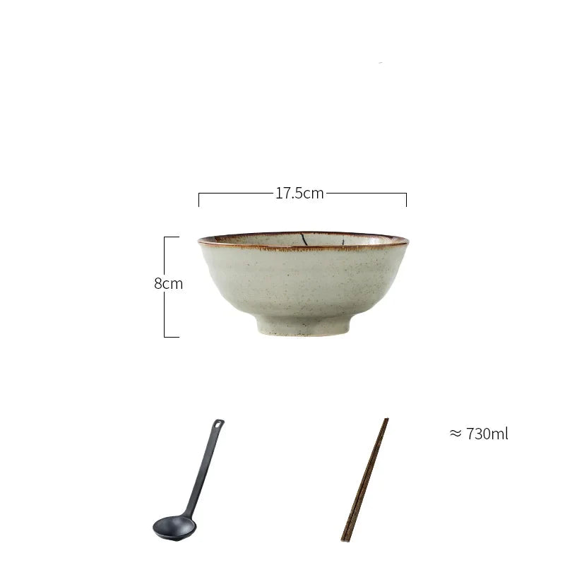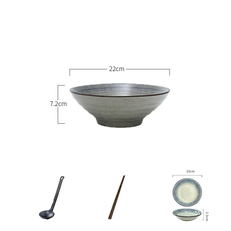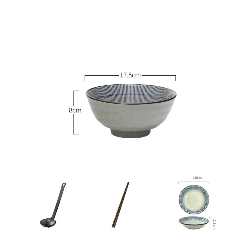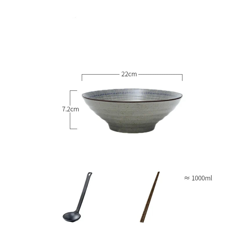Afralia™ Ceramic Retro Large Soup Bowl Set with Spoon and Chopsticks
