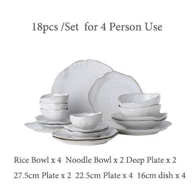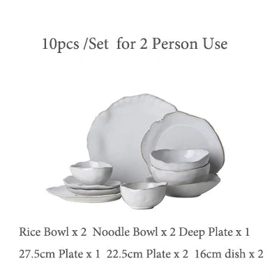 Afralia™ Nordic Ceramic Dinner Set - Round Irregular Shape - 4 Piece Tableware Set