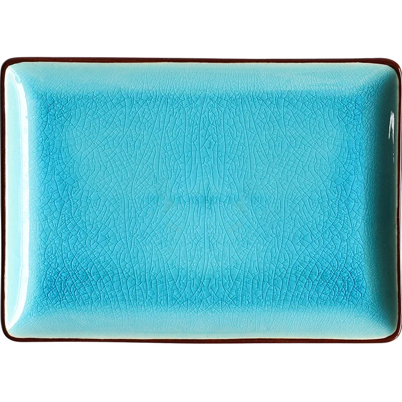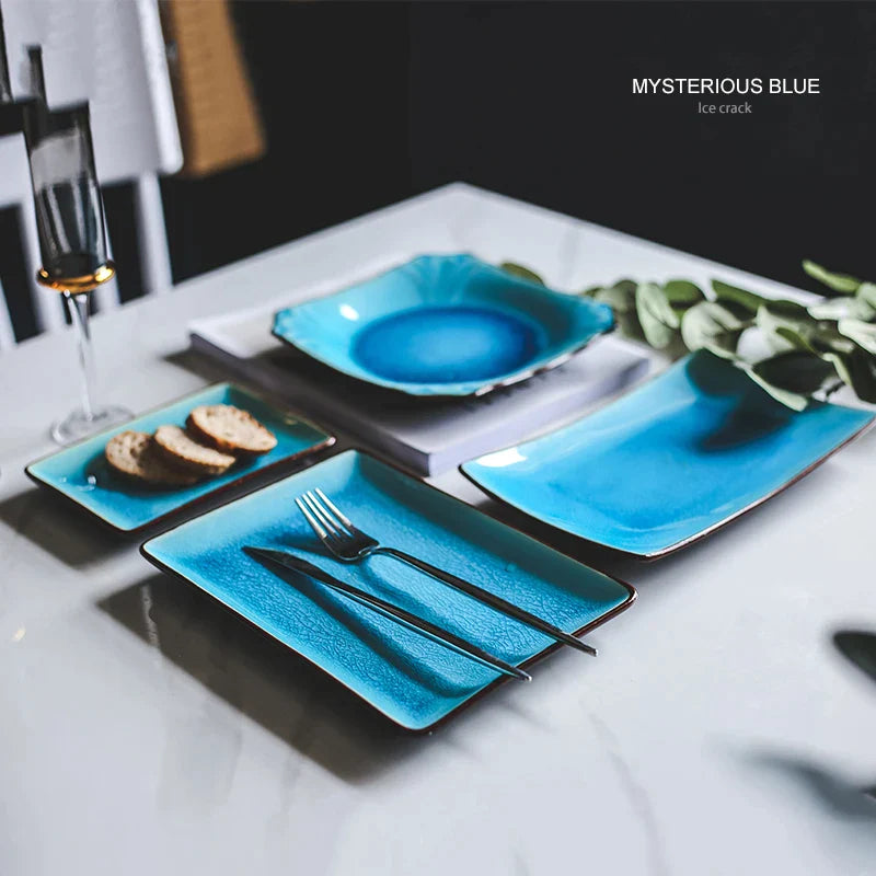 Afralia™ Blue Ice Crack Glaze Ceramic Plate - Round Solid Pattern