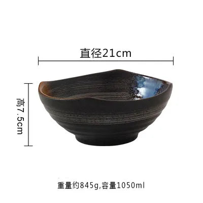 Afralia™ Ceramic Retro Round Plate - Solid Pattern, Frosted Rice Bowl Dish - Home & Restaurant Tableware