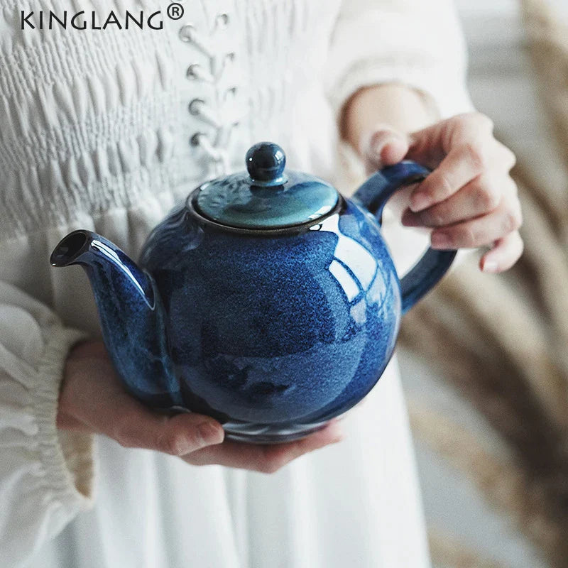 Afralia™ Ceramic Teapot | Vintage Retro Design | Black Tea Set | Customizable for Restaurants