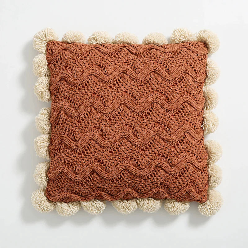 Nordic Knit Pompom Ball Pillowcase in Ivory & Grey for Home Decor by Afralia™