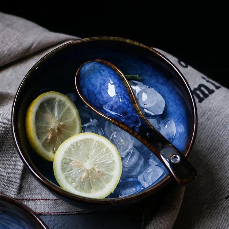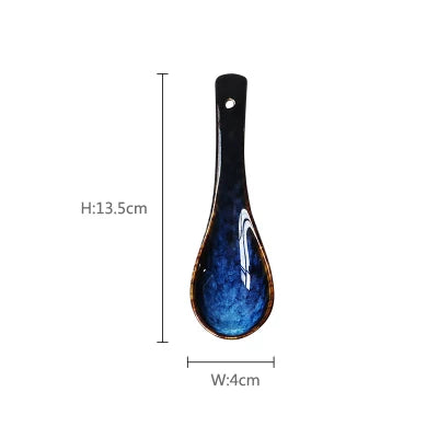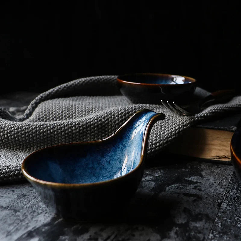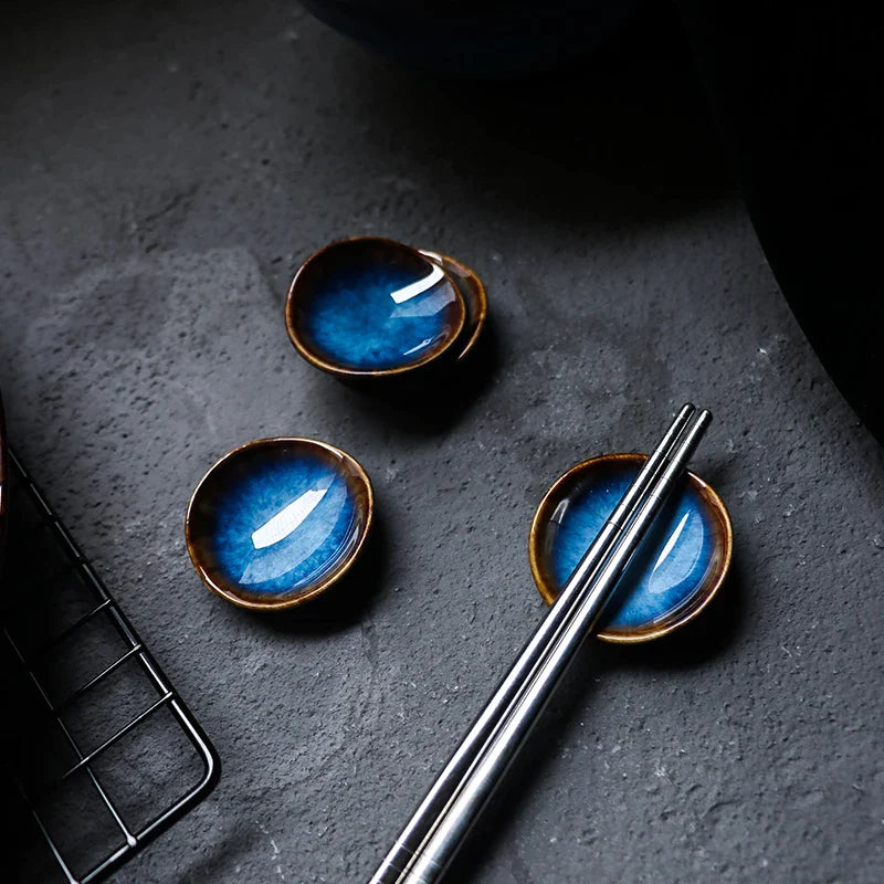 Afralia™ Ceramic Chopstick Holder Spoon Sauce Dish Set - Blue Color, Set of 4