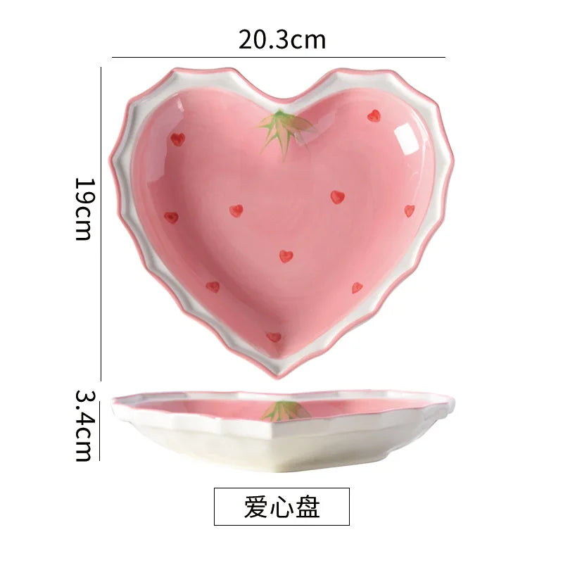 Afralia™ Strawberry Love Ceramic Tableware Set: Hand-Painted Pink Rice Soup Bowl & Plate